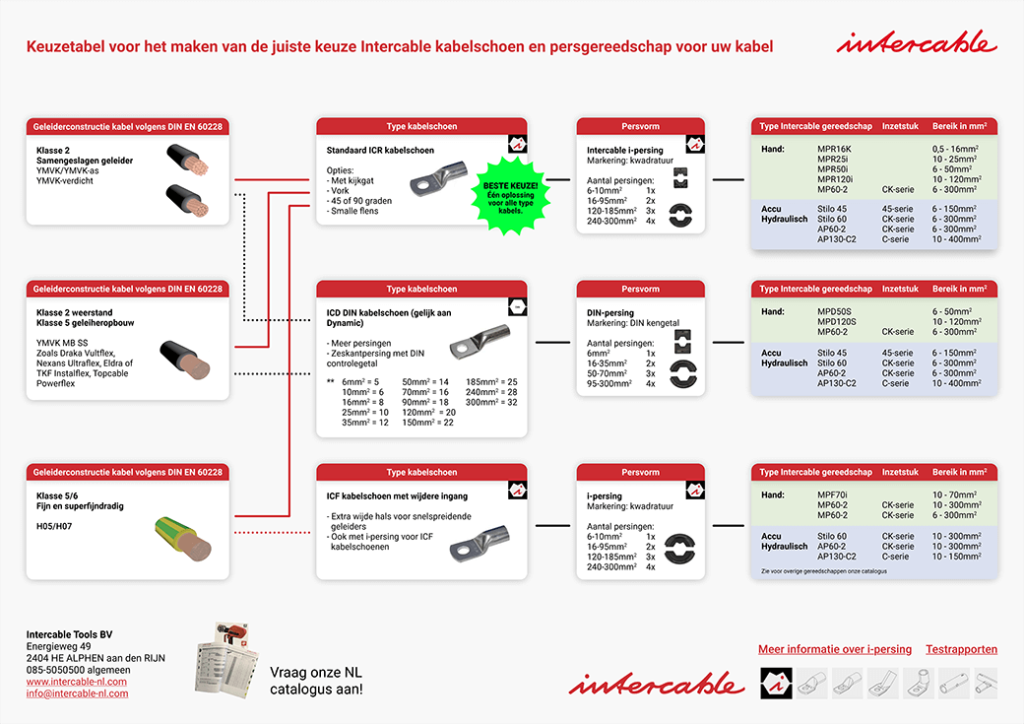 Download hier de persinstructies voor de Intercable R-serie kabelschoenen aantal vereiste persingen. Deze is beschikbaar in het Nederlands of een van de andere onderstaande talen.