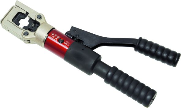 Geschikt voor het persen van kabelschoenen en verbinders op Aluminium- en Koperkabels tot 300 mm² Specificaties: • Chassisdeel uit lichtmetaal • Openklapbare perskop, 180 o draaibaar • Speedhydrauliek door mechaniek met dubbele zuiger • Manuele terugloop door eenvoudig draaien van de basisgreep vanuit iedere positie mogelijk – max Hub: 16mm – perskracht 60kN – bedrijfsdruk 700 bar(70 MPa)